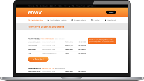 MyWay usluga s brojim pogodnostima dostupna je korisnicima Premium Visa kartica i putem weba